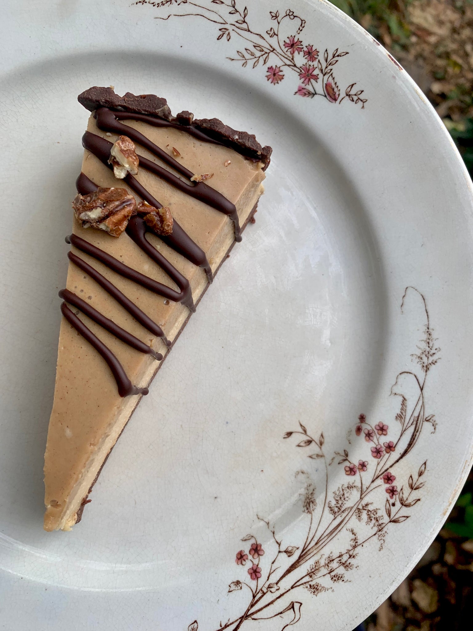 Crust: Sprouted buckwheat (grain + gluten free), cacao powder, coconut flour, maple syrup, coconut oil.